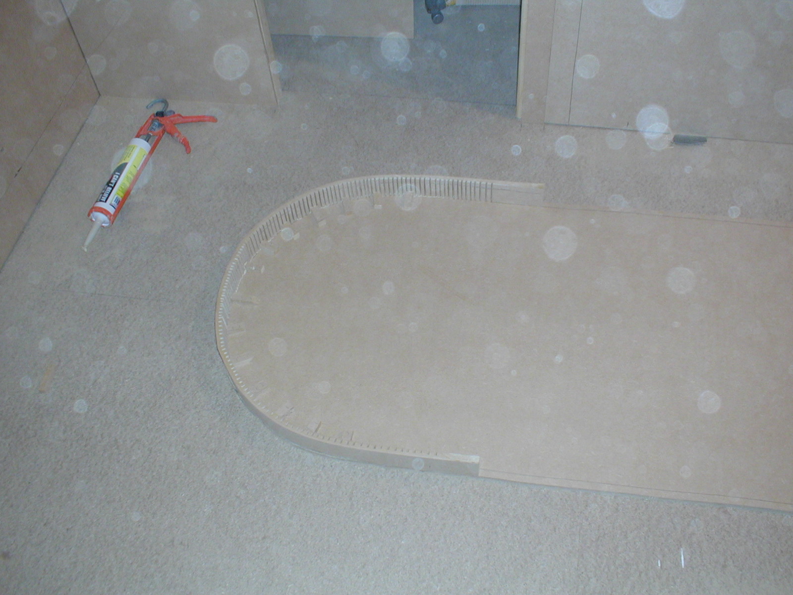 So, I put in some partitions and set the counter top level above them. Cut a hole for the sink, coupled up the pipes and waste etc.
